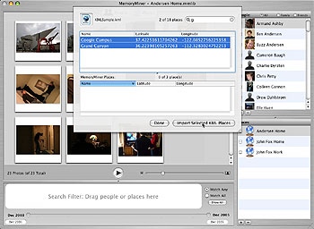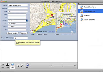 MemoryMiner: Keyword Mapping: Learn how to automatically associate photos with MemoryMiner People & Places upon import using keywords that you added in iPhoto, or that are embedded in the files using Aperture, Lightroom or other applications which support the IPTC standard.